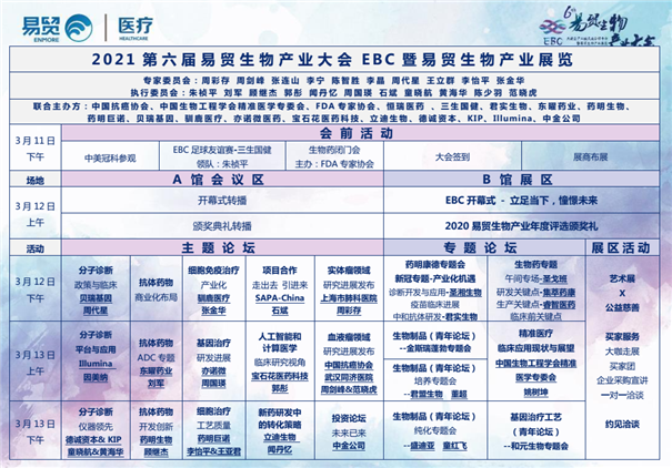 EBC易貿(mào)生物產(chǎn)業(yè)大會是中國規(guī)模最大、最具影響力的生物產(chǎn)業(yè)大會。2020年EBC參會人數(shù)2724人,2021年將突破4000人規(guī)模,參會人群覆蓋創(chuàng)業(yè)者、科學(xué)家、臨床醫(yī)生、投資人和供應(yīng)商等。同期開展的易貿(mào)生物產(chǎn)業(yè)展覽,將有超過200家儀器、耗材、服務(wù)等供應(yīng)商展出,會+展聯(lián)動的EBC,已成為國內(nèi)外生物產(chǎn)業(yè)高層交流與合作的標(biāo)桿平臺。