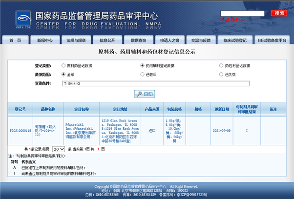 Pfanstiehl致力于為全球生物制劑公司提供高質(zhì)量注射級(jí)藥用輔料,主要產(chǎn)品注射級(jí)海藻糖(T-104-4)、蔗糖(S-124-2-MC和S-124-1-MC)、甘露醇(M-109-7)、無(wú)水琥珀酸鈉(D-160)、六水琥珀酸鈉(D-161)、組氨酸(H-116)、組氨酸鹽酸鹽(H-117)、精氨酸(A-170)等產(chǎn)品已經(jīng)獲得CDE藥用輔料注冊(cè)號(hào),其中海藻糖和蔗糖已經(jīng)處于激活狀態(tài)。