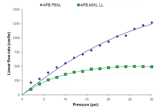 APB P6XL(直徑3.2 cm x床高15 cm)的壓力-流速曲線。