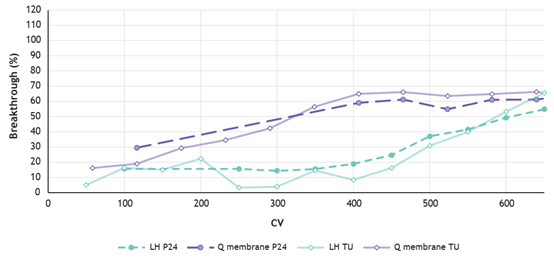 LentiHERO® processed large feed volumes before breakthrough of functional and physical LVV particles.