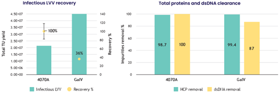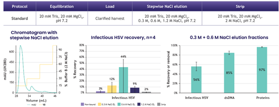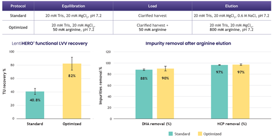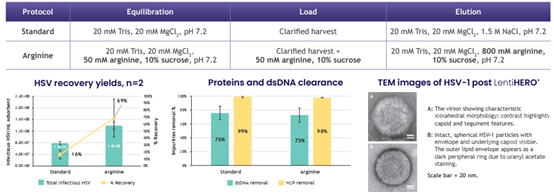 82% lentiviral recovery with yields > 2E+9 TU/mL of adsorbent and > 90% dsDNA/HCP clearance