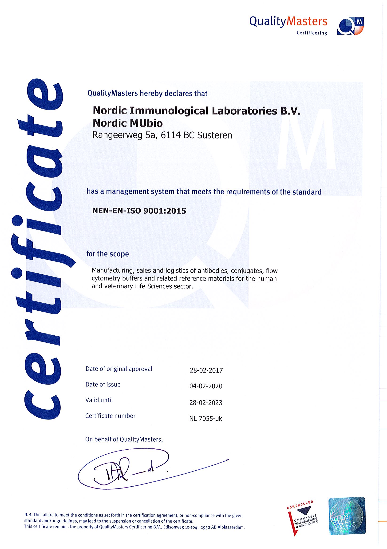 Nordic-MUbio公司供應2000多種用于生物醫(yī)學和獸醫(yī)研究的基礎(chǔ)免疫學試劑,包括抗血清、抗體、免疫復合物、純化蛋白、對照品、血清蛋白標準品和其他校準品。他們包括高度特異性的單克隆抗體,以及用于不同試驗體系的標記二抗。Nordic-MUbio嚴格遵守IS09001標準生產(chǎn)高質(zhì)量的抗體,80%以上的抗體經(jīng)過冷凍組織免疫組化檢測,近70%的產(chǎn)品通過流式細胞術(shù)驗證,50%的產(chǎn)品通過WB驗證。同時Nordic-MUbio也是斑馬魚抗體開發(fā)的引領(lǐng)者,擁有50多種可用于斑馬魚熒光檢測的抗體。Nordic-MUbio的核心優(yōu)勢在于每一個單項產(chǎn)品都提供及時的技術(shù)支持并擁有廣泛的科學數(shù)據(jù)、圖片和文獻參考資料。